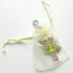 Přívěsek na kabelku nebo na klíče s motivem anděla. Velikost anděla je na výšku 9 cm, na šířku cca 4 cm. Andělka má karabinku na zavěšení, na jedné straně srdíčko, na druhé straně dva malé kovové přívěsky – čtyřlístek a zvířátko. Přívěsky zasílám zabalené do stahovacích organzových sáčků, takže je můžete použít jako hotový dárek a potěšit tak své kolegyně a kamarádky. Barvy sáčků se můžou lišit.