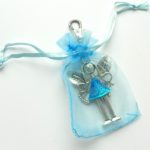 Přívěsek na kabelku nebo na klíče s motivem anděla. Velikost anděla je na výšku 9 cm, na šířku cca 4 cm. Andělka má karabinku na zavěšení, na jedné straně srdíčko, na druhé straně dva malé kovové přívěsky – čtyřlístek a zvířátko. Přívěsky zasílám zabalené do stahovacích organzových sáčků, takže je můžete použít jako hotový dárek a potěšit tak své kolegyně a kamarádky. Barvy sáčků se můžou lišit.