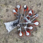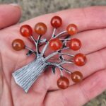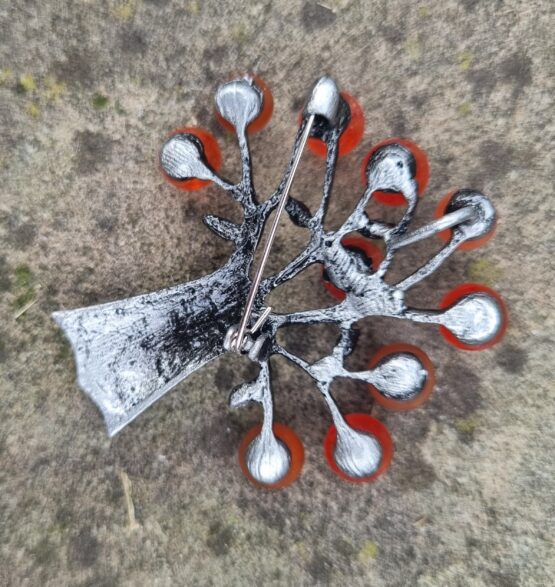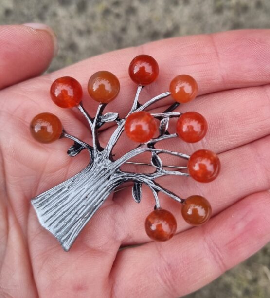 Brož ve tvaru stromu, velikost cca 5×5 cm. Materiál bižuterní kov s korálky, na spodní straně brožový špendlík i očko k zavěšení. Tuto brož v naší dílně nevyrábíme, ale prostě jí na e-shopu musíme mít, protože se nám moc líbí.