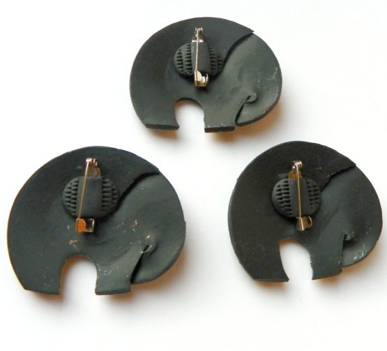 Autorská brož ve tvaru knoflíku, vhodná na sepnutí kardiganu nebo jenom jako ozdoba do klopy. Průměr knoflíku je 4,5cm, na spodní straně brožový mechanizmus.