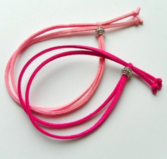 Jednoduchý zatahovací náramek z kůže a korálku jehož koupí pomůžete v boji proti rakovině prsu.