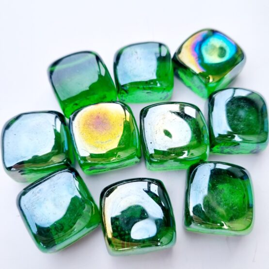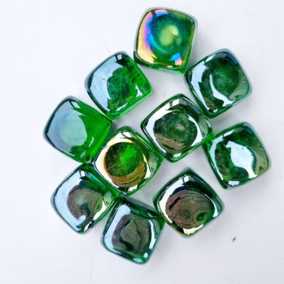 Sada deseti skleněných dekorativních kostek. Určeno na další tvoření (lze je pomalovat, popsat….) nebo jako dekorace. Rozměr 2x2x1,5cm.
