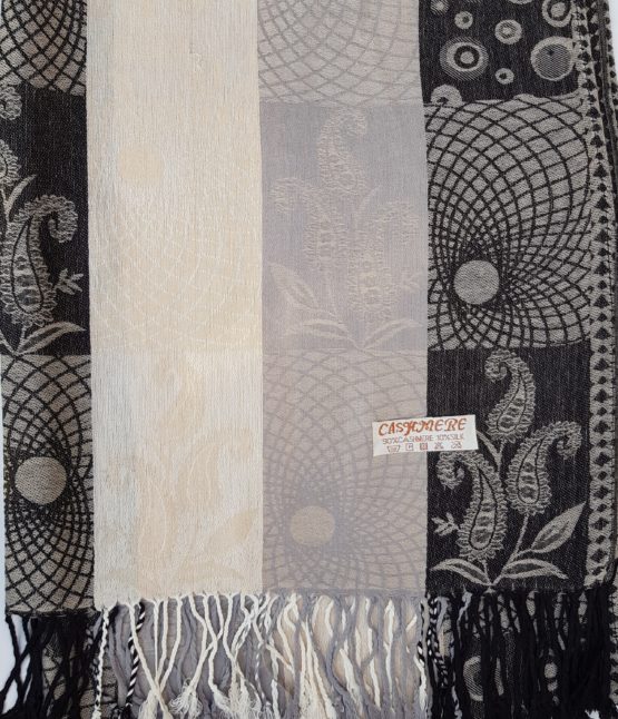 Jemná splývavá šála příjemných barev s jemným vytkávaným vzorem, 90 procent kašmír, 10 procent hedvábí. Na omak je velmi příjemná, neštípe a nekouše :) Šála má rozměry 90 x 180 cm. Hodí se na celoroční nošení. V zimě zahřeje, v létě jí užijete jako pléd při chladných večerech. Tento typ patří mezi moje nejoblíbenější. Můžete jí doplnit různými sponami a usnadnit si tak zavazování a zároveň se ozdobit. Doporučuji ruční praní.