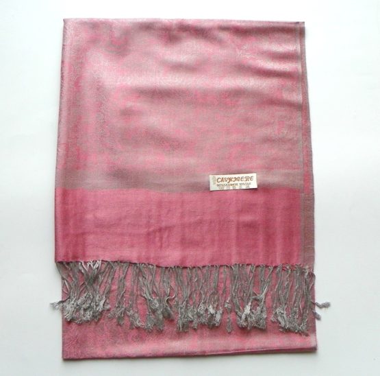 Jemná šála příjemných barev s jemným vytkávaným vzorem , směs kašmír a hedvábí.
