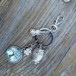 Klíčenka opatřená přívěskem s motýlem, sovičkou, sluníčkem, žabkami a brýlemi. Součástí je kroužek na klíče a karabina. Celková velikost cca 9 cm. Zasílám v dárkovém organzovém sáčku. Pro všechny paní učitelky, které si jistě rády o prázdninách odpočinou.
