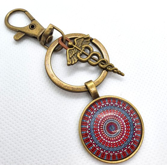 Klíčenka opatřená přívěskem s mandalou a přívěskem se symbolem doktora (had na holi). Součástí je kroužek na klíče a karabina. Celková velikost cca 9 cm. Zasílám v dárkovém organzovém sáčku. Pro všechny skvělé doktory a doktorky, kteří nám pomáhají žít lépe.