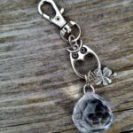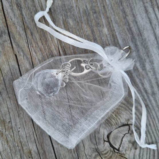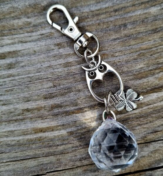 Klíčenka opatřená přívěsky se sovou, čtyřlístkem a koulí, která krásně odráží paprsky. Celková velikost cca 12 cm. Zasílám v dárkovém organzovém sáčku.
