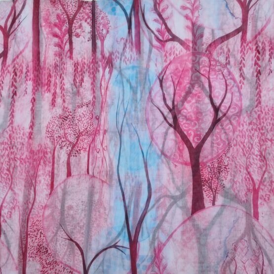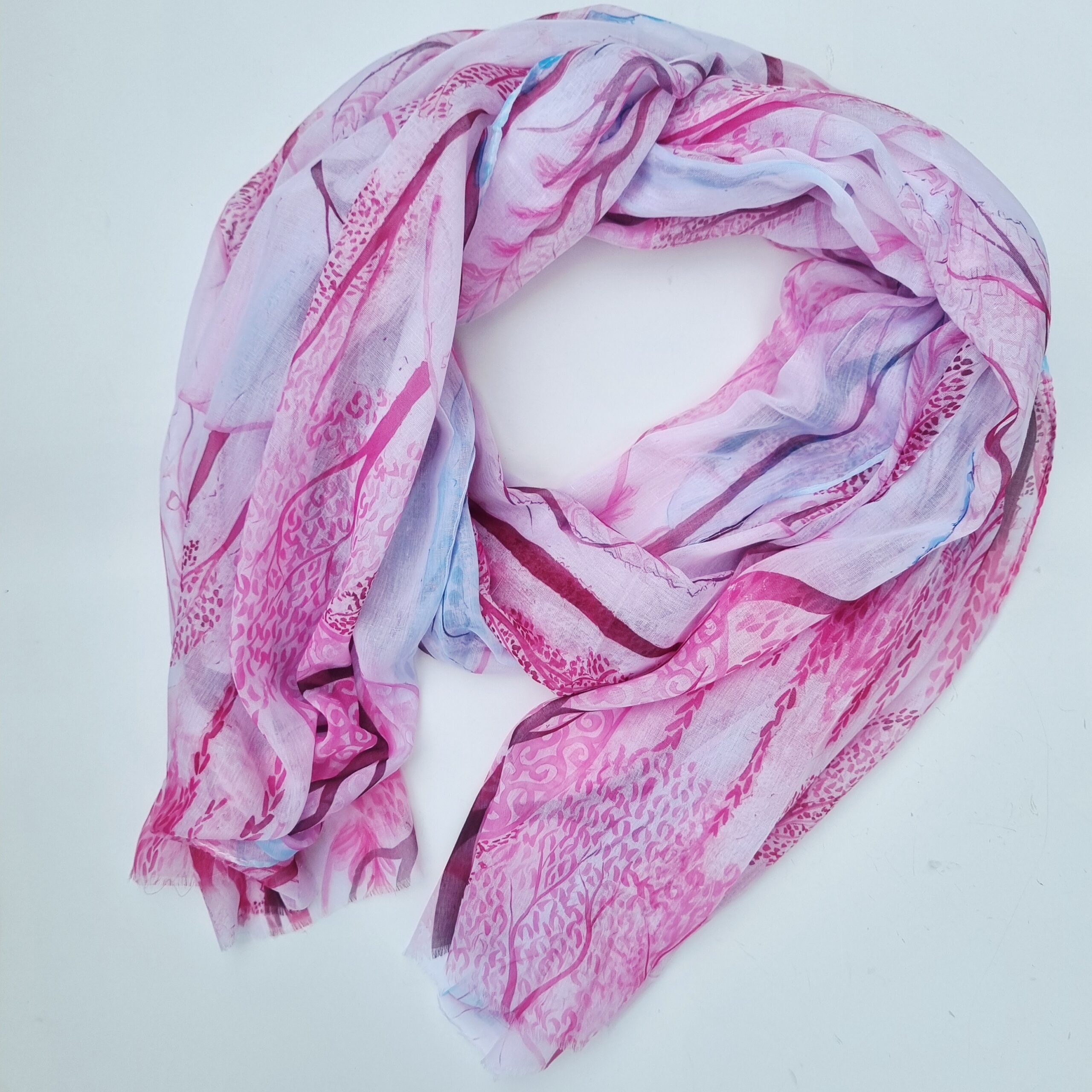 Zahřejte si krk uměleckým dílem - šála s jednostranným kvalitním potiskem o rozměrech 70x180 cm plus třásně. Složení 85% bavlna, 15% viskóza. Jemná a velmi příjemná na nošení, můžete nosit také jako pareo.