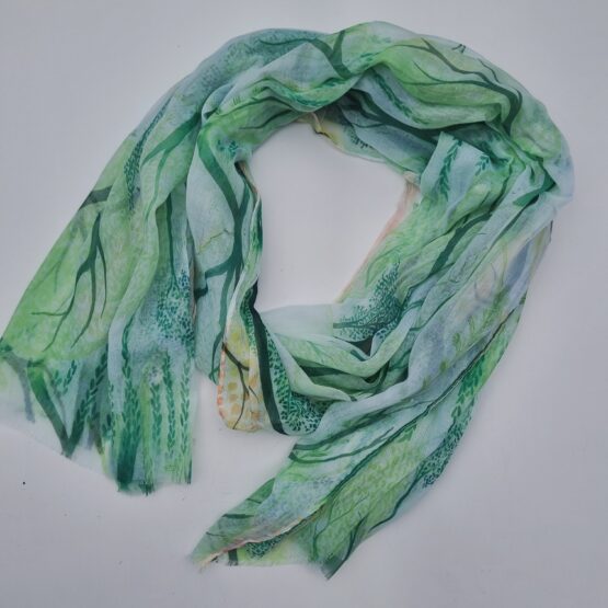 Lehoučká šála, jemná a velmi příjemná na nošení, materiál viskoza, rozměr 50x180cm. Šála je potištěna krásným barevným vzorem. Letní lehoučký kousek do každého šatníku. Doplnit jí můžete některou malou sponou z naší nabídky, nebo kovovou kytičkou.