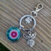 Klíčenka opatřená přívěskem s mandalou, andělským křídlem pro štěstí a vločkou. Součástí je kroužek na klíče a karabina. Celková velikost cca 9 cm. Zasílám v dárkovém organzovém sáčku. Barva sáčku se může lišit.