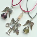 Sada 3 náhrdelníků vyrobených z barevných šňůrek a přívěsků ze stříbrného bižuterního kovu s motivem andělíčků. VÝHODNÁ CENA!!!