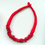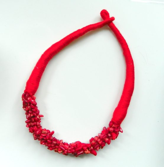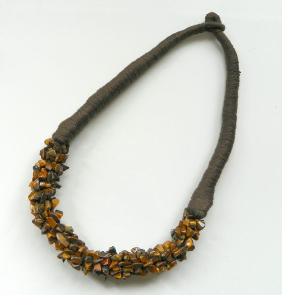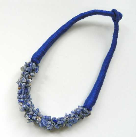 Náhrdelníky které jsem přivezla ze svých cest po Asii. Jsou vyrobeny ze zlomků minerálů a textilního zakončení. Délka cca 46 cm. Jsou výrazné a zajímavé, ve třech barevných provedeních – tmavě modrá, hnědá a červená.