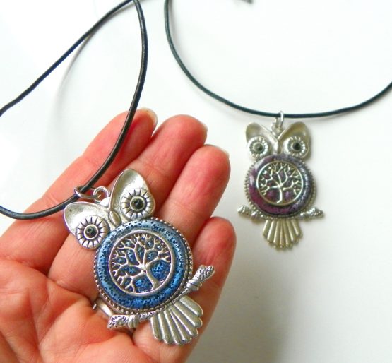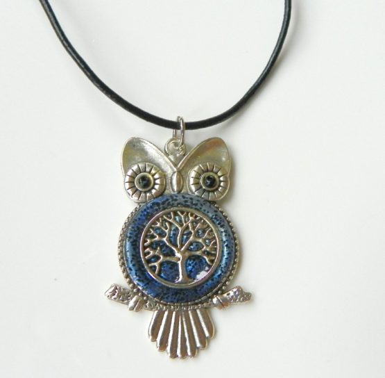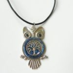 Přívěšek s motivem sovy a stromu života, který je zalitý v křišťálové pryskyřici. Vše je zavěšeno na kvalitní kožené šňůrce s chirurgickým zapínáním, délka 60 cm. Velikost sovy je 5,5×3 cm. Originální dárek například pro paní učitelku, nebo jako drobná pozornost k promoci.