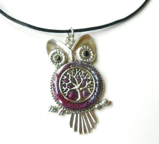 Přívěšek s motivem sovy a stromu života, který je zalitý v křišťálové pryskyřici. Vše je zavěšeno na kvalitní kožené šňůrce s chirurgickým zapínáním, délka 52 cm. Velikost sovy je 5,5×3 cm. Originální dárek například pro paní učitelku, nebo jako drobná pozornost k promoci.