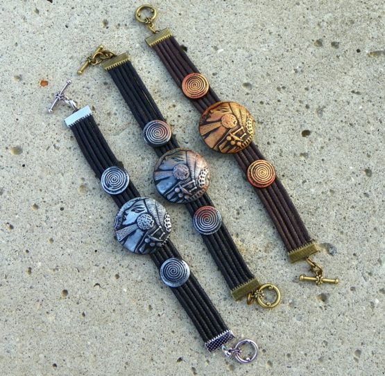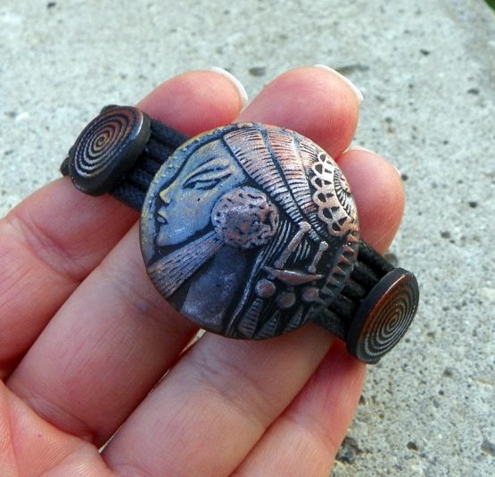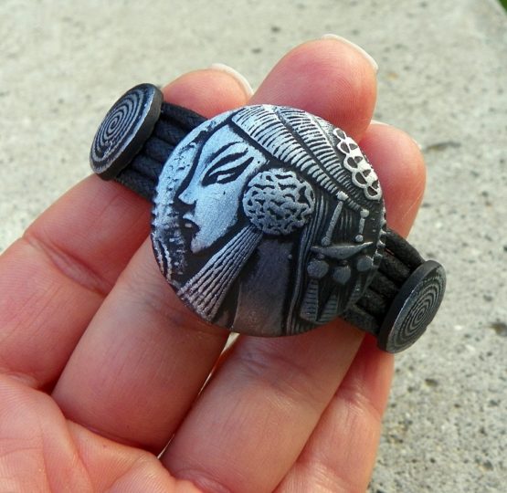 Náramek z kolekce Medieval je vyrobený z polymerové hmoty a bavlněných šňůr. Délka náramku je 18 cm, na objednávku je možné ho prodloužit nebo zkrátit. Je výrazný, přesto lehký a pěkně sedí na zápěstí. Vyrobím na objednávku do jednoho týdne.