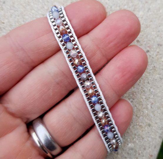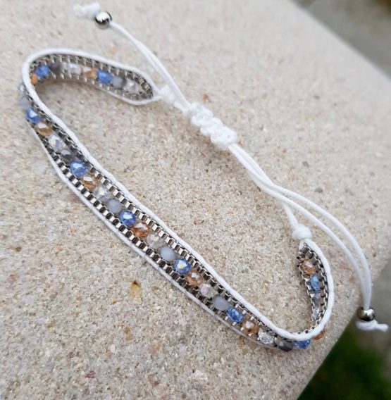 Náramek navlečený ze skleněných japonských dvoudírkových korálků. Navlečeno na pevné polyesterové šňůrce, zatahovací zapínání, tudíž univerzální velikost. Tyto náramky si hned oblíbíte pro jejich lehkost a krásné barevné efekty. Krásně se dají k sobě kombinovat, jeden nikdy nestačí :) Za mě nejlepší náramek co jsem kdy měla na ruce (neobtěžuje, nemusí se sundavat do vody a je prostě a jednoduše krásný)
