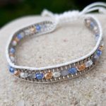 Moderní náramek z drobných minerálních a skleněných korálků (tyrkenit, achát, tygří oko, lapis lazuli). Velikost je díky zatahovacímu zapínání univerzální.