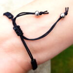 Zatahovací ochranitelský náramek vyrobený z kvalitní polyesterové šňůrky a korálků z chirurgické oceli a černého přírodního achátu. Velikost je univerzální, v nejširší možnost roztažení náramku je 26 cm. Zapínání je zatahovací, na 7 uzlíků pro štěstí. Zasíláme připevněné na kartičce s naším originálním razítkem do které můžete napsat svoje věnování.