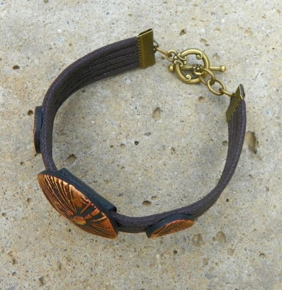 Náramek z kolekce Medieval je vyrobený z polymerové hmoty a bavlněných šňůr. Délka náramku je 18 cm, na objednávku je možné ho prodloužit nebo zkrátit. Je výrazný, přesto lehký a pěkně sedí na zápěstí.