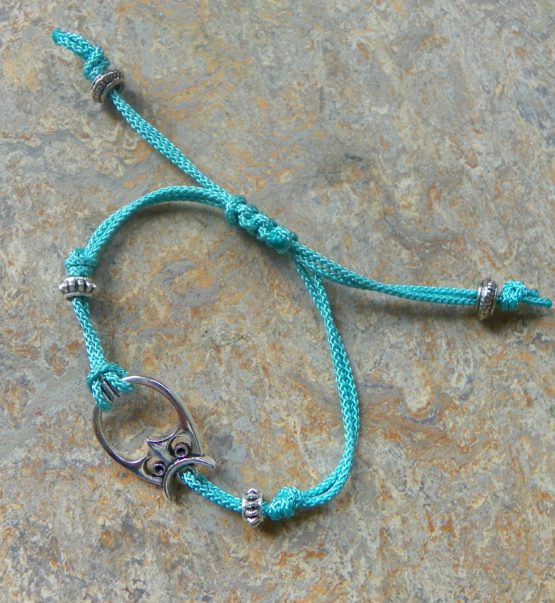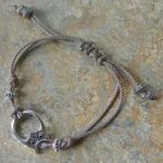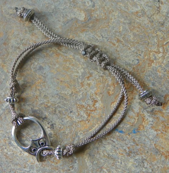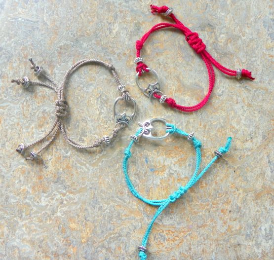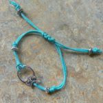 Náramek vyrobený z barevných šňůrek a bižuterních komponentů ze stříbrného kovu. Náramek je zatahovací, velikost je tedy univerzální, vyrábíme ve třech barevných provedeních – tyrkysová, růžová, béžová. Vhodný dárek pro všechny moudré paní učitelky.