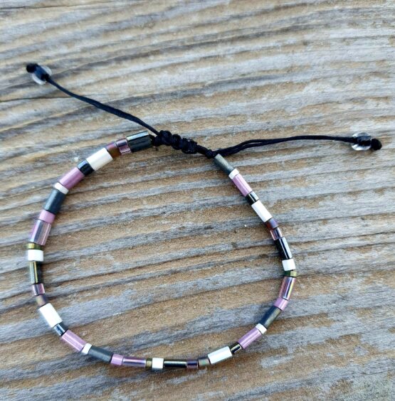 Náramek navlečený ze skleněných japonských dvoudírkových korálků. Navlečeno na pevné polyesterové šňůrce, zatahovací zapínání, tudíž univerzální velikost. Tyto náramky si hned oblíbíte pro jejich lehkost a krásné barevné efekty. Krásně se dají k sobě kombinovat, jeden nikdy nestačí :)