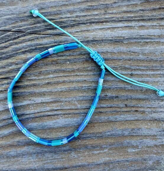 Náramek navlečený ze skleněných japonských dvoudírkových korálků. Navlečeno na pevné polyesterové šňůrce, zatahovací zapínání, tudíž univerzální velikost. Tyto náramky si hned oblíbíte pro jejich lehkost a krásné barevné efekty. Krásně se dají k sobě kombinovat, jeden nikdy nestačí :) Za mě nejlepší náramek co jsem kdy měla na ruce (neobtěžuje, nemusí se sundavat do vody a je prostě a jednoduše krásný)