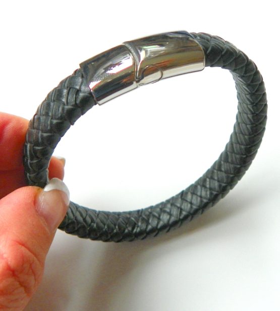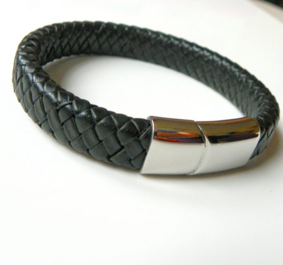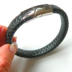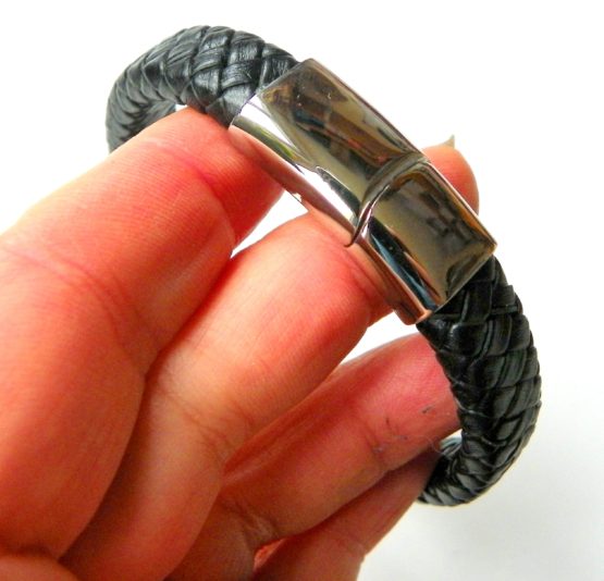 Černý splétaný náramek, vhodný pro muže i ženy – délka 22 cm (pánská střední nebo dámská větší velikost) Zapínání je ocelová spona – vysouvá se do strany a je opatřena i magnetem. Dobře se zapíná a drží.