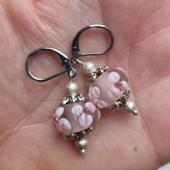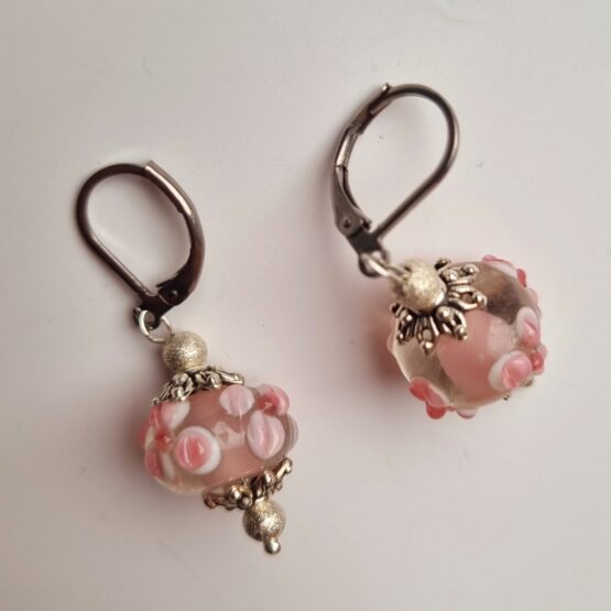 Náušnice zavěšená na klapce z chirurgické oceli, ozdoba je korálek ze skleněné vinutky, velikost korálku cca 12mm.