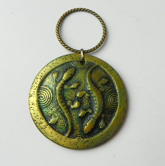 Spona nejenom na malý šáteček vyrobená z polymerové hmoty, ozdobená jemným metalickým dekorem, rozměry cca 5x4 cm. Cípy šátku jednoduše prostrčíte proti sobě otvory ve sponě a zatáhnete. Šátek pak pěkně sedí na krku a nic se nerozvazuje. Sponku můžete použít i na větší šátek, tenkou velkou šálu nebo pareo.