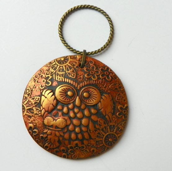 Spona nejenom na malý šáteček vyrobená z polymerové hmoty, ozdobená jemným metalickým dekorem, rozměry cca 5x4 cm. Cípy šátku jednoduše prostrčíte proti sobě otvory ve sponě a zatáhnete. Šátek pak pěkně sedí na krku a nic se nerozvazuje. Sponku můžete použít i na větší šátek, tenkou velkou šálu nebo pareo.