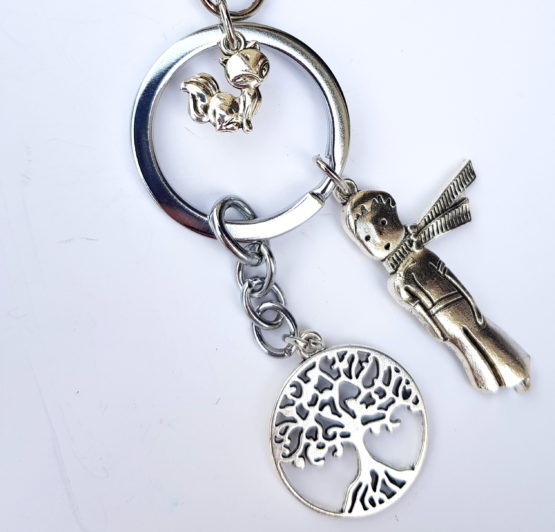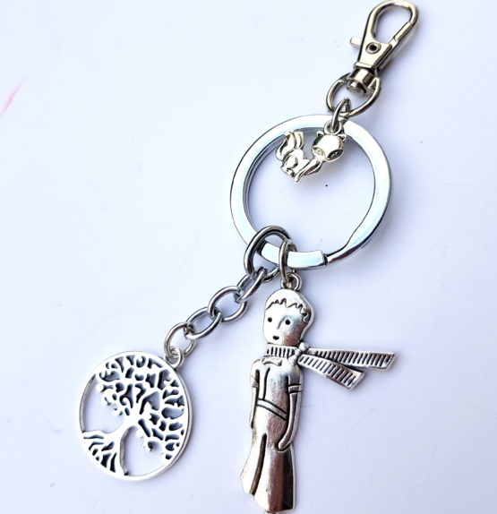 Přívěsek na klíče nebo na kabelku s motivem malého prince a stromu. Vše vyrobeno ze stříbrného bižuterního kovu, zavěšeno na kroužku na klíče. Zasílám v dárkovém organzovém sáčku. Celková délka cca 10 cm.