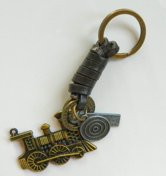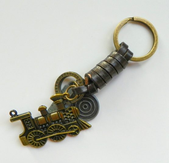 Přívěsek pro chlapce nebo muže s motivem mašinky. Celková délka cca 11 cm, je poměrně masivní, vyrobeno ze starozlatého bižuterního kovu a kůže. Zasílám v celofánovém sáčku.