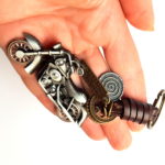 Přívěsek pro chlapce nebo muže s motivem mašinky. Celková délka cca 11 cm, je poměrně masivní, vyrobeno ze starozlatého bižuterního kovu a kůže. Zasílám v celofánovém sáčku.