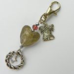 Přívěsek na klíče nebo kabelku s vánočním motivem. Vyrobeno ze stříbrného bižuterního kovu a ručně vyrobeného skleněného srdíčka. Celková délka je cca 9 cm, zasílám v dárkovém organzovém sáčku.