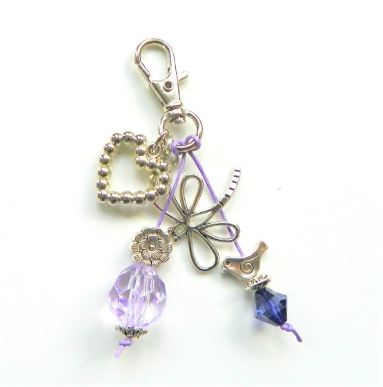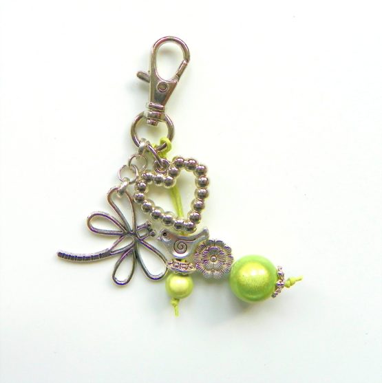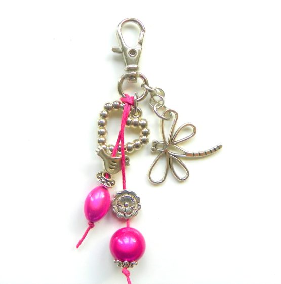 Přívěsek na klíče nebo kabelku s motivem vážky. Vše je vyrobeno ze stříbrného bižuterního kovu a korálků , zavěšeno na karabině. Zasílám v dárkovém organzovém sáčku. Celková délka cca 10 cm.