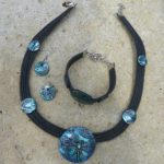 Výrazný a přesto lehký náhrdelník s náramkem a náušnicemi v jedné sadě.