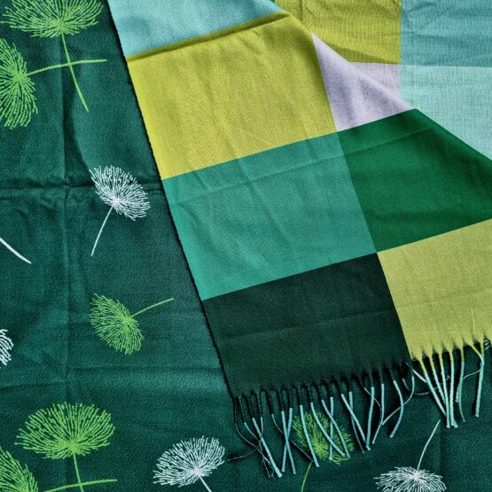 Tak tahle šála je naprostá bomba – neuvěřitelně měkký a jemný materiál (50/50 viskoza a kašmír), skvěle vyladěné barvy. A k tomu všemu je OBOUSTRANNÁ!!!!! Na jedné straně praktické kostky a na druhé krásný vzor s pápěřím pampelišky. Je prostě skvělá a tu musíte mít :)