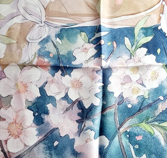 Luxusní šáteček o rozměrech 53×53 cm, materiál je velmi kvalitní a na dotyk příjemný silk touch polyester. Praní ručně, při nízké teplotě a velmi jemně, pak jen nechat vyvěsit, případně přežehlit přes mokrý ručník.