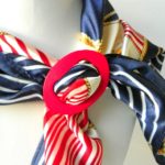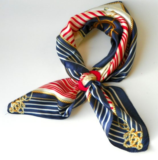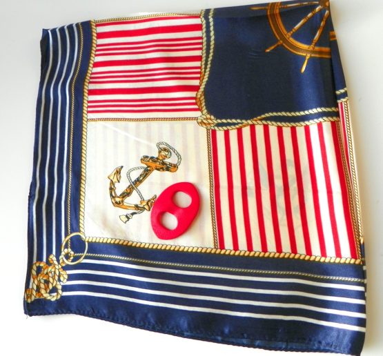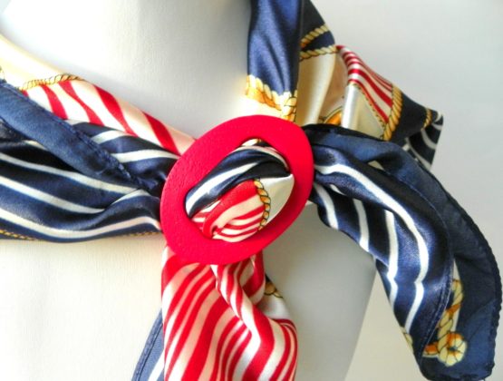 Malý šáteček 60x60 cm, materiál směs polyester/ hedvábí, je doplněný ozdobným válečkem . Cípy šátku proti sobě jednoduše protáhnete proti sobě skrz váleček. Šátek pak pěkně drží a zároveň zdobí. Krásný a elegantní doplněk jarního i podzimního oblečení nebo kancelářského outfitu. Tuto spojku můžete samozřejmě použít i na jakékoliv jiné tenké šátky nebo šály, lze jí i nasunout na oba cípy směrem vzhůru.