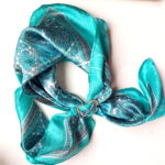 Krásná zelenotyrkysová pašmína s jemným vzorem, s třásněmi, hebká a měkoučká, je doplněna sponou vyrobenou z polymerové hmoty. Délka šály je 170 cm, šířka cca 70 cm, průměr spony 5 cm. Spona je upevněna na gumičce a opatřena americkám zapínáním, které lehce zapnete a můžete použít i na jinou šálu. Je to praktický doplněk, sponu můžete nechat ve spodní části zapnutou a pak už jen šálu omotáte jednou nebo dvakrát kolem krku a nemusíte zavazovat. Materiál 90 procent kašmír, 10 procent hedvábí, prát ručně.