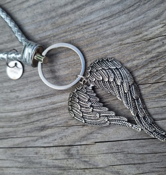 Klíčenka se zaplétaným stříbrným držadlem, dvěma kroužky na klíče a přívěskem s andělskými křídly. Celková délka je cca 19 cm. Tato klíčenka je vhodná pro všechny, kdo neustále hledají klíče.